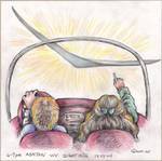 It was a clear day. We were driving with the radio on and the windows up. We were discussing the logistics and setup of our craft booth as we drove.